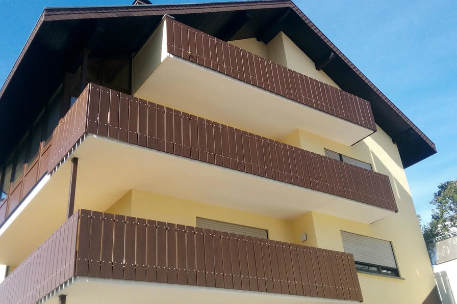 Die Profile lassen sich leicht verarbeiten, haben eine sehr gute UV- und Witterungsbeständigkeit, belasten die Tragfähigkeit des Balkones nicht, sind pflegeleicht und müssen nicht gestrichen werden und können an bereits bestehende Unterkonstrunktionen nach Bedarf angepasst werden.